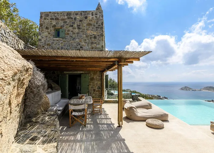 Esta villa dispone de una cocina bien equipada, una zona de comedor. La cocina también dispone de cafetera/tetera, nevera y un horno. El restaurante Thalassa se encuentra a tan solo 7 minutos a pie. El Aeropuerto Nacional de Míconos se ubica a 5 km del alojamiento. En la Aquadise Seaview Pool Villa - Three Bedrooms puedes alquilar bicicletas, mientras que en los alrededores se puede practicar equitación, tenis sobre hierba y pesca. Los tratamientos en las instalaciones incluyen envolturas corporales, exfoliación corporal y pedicura. También ofrece instrucciones de yoga.